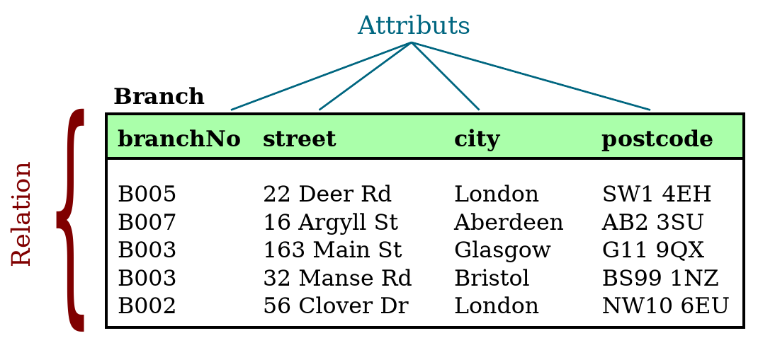Attribut : Le nom d'une colonne de relation. L'ordre des attributs n'a pas d'importance.